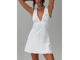 Mini dresses Deep v-neckline, floral embroidered detail at b....
