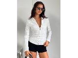 Long sleeve top Pinstripe print, classic collar, invisible z....