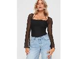 Long sleeve bodysuit Sheer sleeve, halter neck tie fastening....
