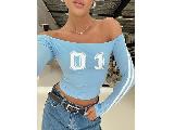 Long sleeve top Strapless, graphic print, elasticated band a....