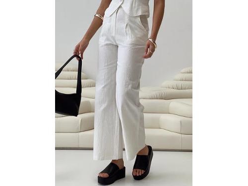 High-rise linen pants Belt looped waist, zip and button fastening, straight leg, subtle pleats at waist Non-stretch material, unlined 75% organic cotton 25% flax Cold machine wash