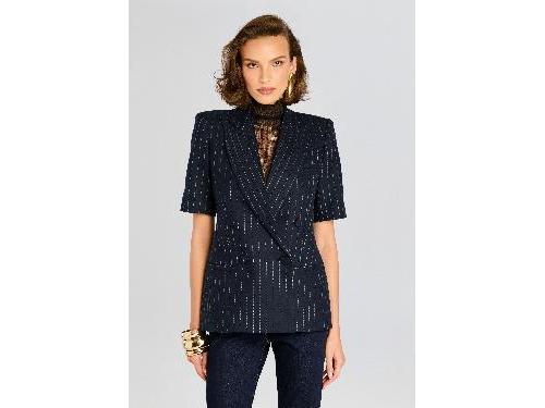 The Claudia Blazer boasts a short sleeve design and pinstripe pattern, adding a touch of sophistication to any outfit. Originally featured in our SS24 runway show, this blazer seamlessly transitions from a day at the office to a night out on the town. 39% Wool, 31% Polyester, 27% Viscose, 3% Spandex Made in China Model is 5ft10in wearing size S Style No. FW24-10078