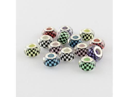 Mosaic Pattern Resin European Beads, with Silver Color Plated Brass Double Cores, Large Hole Rondelle Beads, Mixed ColorSize: about 14mm in diameter, 9mm thick, hole: 5mm.