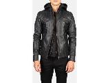 Buy Hector Black Hooded Leather Biker Jacket For Men Made of....
