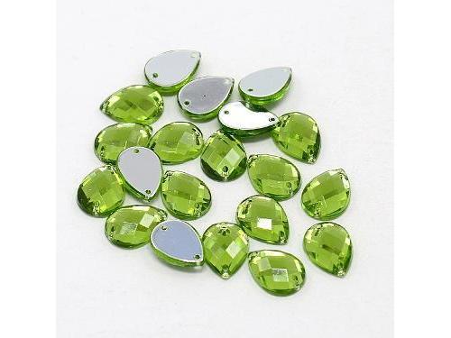 Sew on Rhinestone, Taiwan Acrylic Rhinestone, Two Holes, Garments Accessories, Green Yellow, Dropabout 10mm wide, 14mm long, 4mm thick, hole: 1mmDue to the production process problem, the product size within the error range of 0.5~1mm.