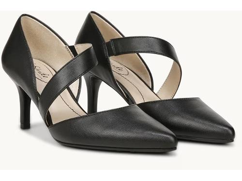 On-point and on-trend. This pump is a true stunner. Faux leather or microsuede upper with a pointed toe slip-on fit and asymmetrical strap detail with elastic goring for extra flexibility. Toe box and heel counter partially crafted with recycled materials. Soft System® comfort package provides all-day support flex and cushioning Traction sole provides you with extra stability Just Right Height 2 and 3/4 in heel Life Stride Suki Pump Shoes (Black) Suede 10.0 W