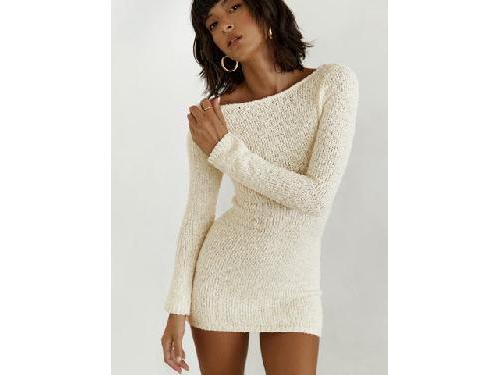 Long sleeve mini dress Boucle material, low back, sheer knit, tie fastening at back Good stretch, unlined 100% polyester Cold gentle wash clothes-0212202617433 User Information Avoiding Scams