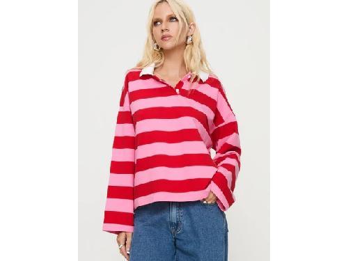 Collared sweater Stripe print, button detail at front, long sleeve, drop shoulders Non-stretch material, unlined 93% cotton 7% elastane Cold gentle machine wash