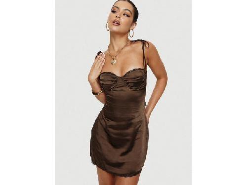 Satin mini dress Wired underbust, cowl back, adjustable tie straps, lace trim, tie up detail at back Non-stretch, unlined Princess Polly Lower Impact 100% reclaimed polyester Cold gentle machine wash