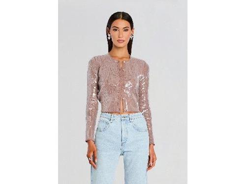 Indulge in opulence with the Annamarie Sequin Knit Cardigan. This cropped wool cardigan is adorned with all over sequins, bringing a touch of glamour to any occasion. Dress it up or down for a versatile, luxurious look. 90% Wool, 10% Cashmere Made in China Model is 5ft10 wearing size S Style No. HL25-10653