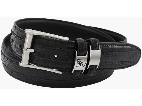 Crocodile, lizard, and snake print all live in perfect harmony on this stylish belt. The embossed leather is complemented by a bushed nickel buckle and brushed nickel pieces on the keepers
