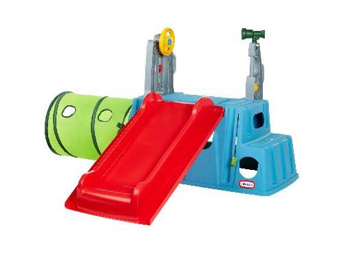 Toddlers get ready for lots of fun on the Little Tikes Easy Store Slide & Explore. This playset is action-packed with loads of play options; a slide, climbing steps with easy-grab stair handles, and collapsible crawling tunnel with peek-a-boo windows. Toddlers and kids stay active as they climb, slide, and crawl. The interactive playset features a rotating telescope with 3x zoom, spinning steering wheel, and multiple clicker bugs for hours imaginative play. As a bonus, the weather-resistant Easy Store Slide & Explore disassembles and packs away for easy storage and transport.
