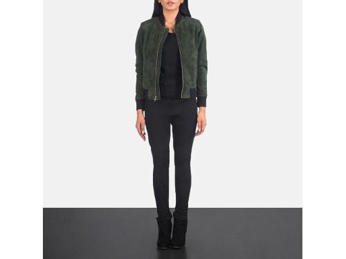 Buy Bliss Green Suede Bomber Jacket For Women Made of Goatskin Suede. Free Shipping in USA, UK, Canada, Australia & Worldwide With Custom Made to Measure Option.