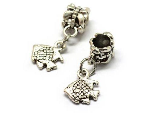 Alloy European Dangle Charms, Tibetan Style, Large Hole Pendants, Fish, Antique SilverSize: about 23mm long, hole: 4.5mm, Fish: 11x10mm.