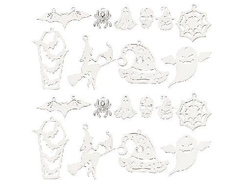 SUNNYCLUE 20Pcs 10 Styles 201 & 304 Stainless Steel Pendants, Ghost & Skull & Spider, Stainless Steel ColorSize: Pumpkin with Hat: about 18x15x1mm, hole: 1.4mm, 2pcs; Ghost: about 17x17x1mm, hole: 1.4mm, 2pcs; Skull: about 15x10x1mm, hole: 1.2mm, 2pcs; Witch with Cat: about 39.5x35x1mm, hole: 2mm, 2pcs; Hat: about 28.5x31.5x1mm, hole: 1.5mm, 2pcs; Bat: about 16x39x1mm, hole: 1.4mm, 2pcs; Ghost: about 29x35.5x1mm, hole: 1.6mm, 2pcs; Coffin with Bat: about 45x24x1mm, hole: 1.5mm, 2pcs; Spider Web: about 28x25.5x1mm, hole: 1.4mm, 2pcs; Spider: about 15x13x2mm, hole: 2mm, 2pcs; Plastic Bead Containers: about 68x52x11mm, 1pc.