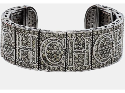 This cuff bracelet from CH Carolina Herrera is a statement accessory that is crafted from metal and adorned with crystals. The CH logo on the surface gives it a nice finish.