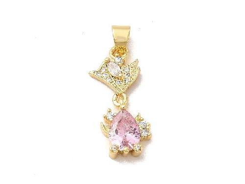 Rack Plating Brass Micro Pave Cubic Zirconia Pendants, Cadmium Free & Lead Free, Long-Lasting, Flower & Teartrop, PinkSize: about 10mm wide, 24mm long, 7mm thick, hole: 3x5mm.