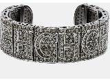 CH Carolina Herrera Crystal Logo Gunmetal Tone Open Cuff Bra...