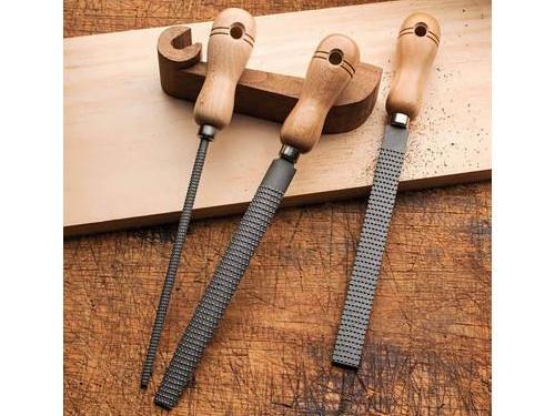 These are the best machine-cut rasps we’ve come across. The aggressive teeth quickly remove wood to cut a rough shape and the tough steel makes this set hard to damage. This set comprises of three styles: round, half-round and flat. They can tackle a variety of tasks, like rough-shaping craft carvings, or beveling corners from square pieces. The round rasp can ream out holes in projects. With lightly-varnished 4 beech handles, and 8 long bodies. Set Of 3 Woodworkers Rasps