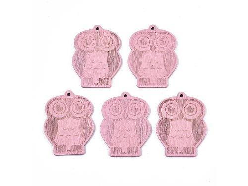 Painted Poplar Wood Pendants, Laser Cut Wood Shapes, Owl, PinkSize: about 46.5mm long, 35mm wide, 3mm thick, hole: 2mm.