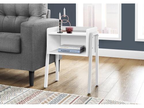 With this accent table, you'll have storage and style by your side. Placed beside a sofa, chair, or bed in a living room or bedroom, this versatile end table or nightstand with storage provides convenient surfaces for keeping items within reach. Place a small lamp and mobile devices on the tabletop that has a tray-like style with raised edges along the sides and back to help prevent items from rolling off the surface. Underneath is a wide, deep storage cubby that offers a place for a box of tissues or a stack of books. The top of the table is in a white finish and is supported by thick white metal legs that are exposed for a modern-industrial look. Available for Online Purchase Only. Assembly required. This product ships direct from the manufacturer, so RC Willey Delivery is not available....