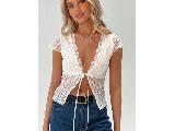 Top Floral print, lace material, tie fastening at bust, spli....