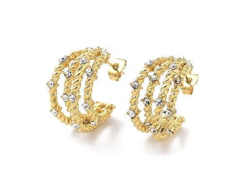 Real 18K Gold Plated 304 Stainless Steel Stud Earrings with Rhinestone, Split Earrings, Half Hoop Earrings, CrystalSize: about 0.87 inch(22mm) in diameter, 0.41 inch(10.5mm) thick.