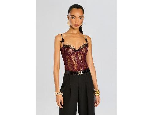 Our Lady Corset Top is a sultry and sophisticated choice for any occasion. The delicate lace detail and fitted bodice create a flattering and feminine silhouette. This top is perfect for a night out or a special occasion, shown here in Black/Port. 86.51% Polyamide, 13.49% Spandex Made in China Model is 5ft10in wearing size S Style No. FW24-9998