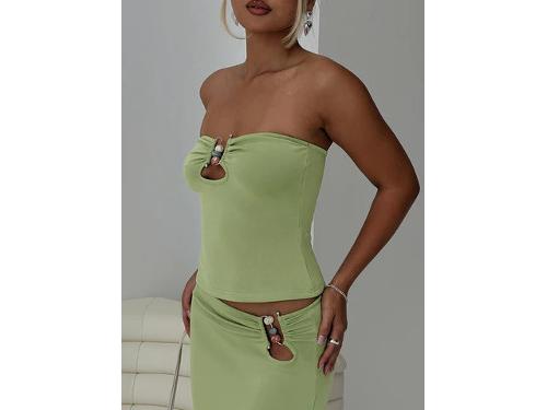 Strapless top Cut-out at front with hoop ring marble detail, inner silicon strip at bust Good stretch, unlined 5% modal 41% polyester 4% elastane Cold hand wash