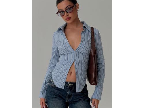 Long sleeve top Stripe print, classic collar, button-down closure, split at cuffs with button detail Non-stretch material, unlined 100% polyester Cold gentle machine wash