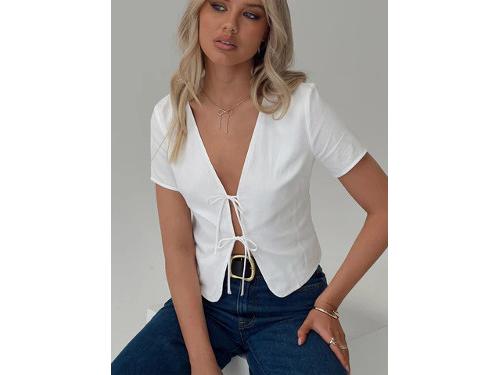 Top Cut-out at front with tie fastenings, drop shoulders Shirt style Non-stretch material, fully lined 100% cotton Cold gentle machine wash