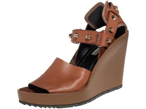 These leather sandals are edgy look fashionable and chic. With broad vamps and studded ankle straps these sandals are made to offer you maximum style. These sandals from Balenciaga are complete with high wedge heels. Wear these beautiful brown sandals to the next event you have to attend and watch heads turn.