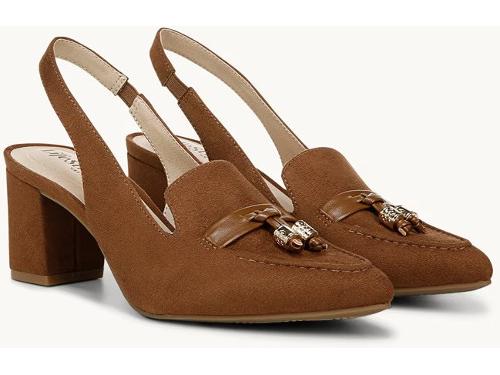 Tailored and timeless this now-trending slingback pump with a tassel detail looks sophisticated with every outfit. Microfiber or fabric upper with a softly pointed toe slingback strap with built-in stretch and ornamental tassel detail. Linings crafted from partially recycled materials. Soft System® comfort package provides all-day support flex and cushioning Traction sole for extra stability Just Right Height 2 3/8 in block heel Life Stride Audrey Slingback Pump Shoes (Fawn Brown Faux Leather) Fabric 10.0 M