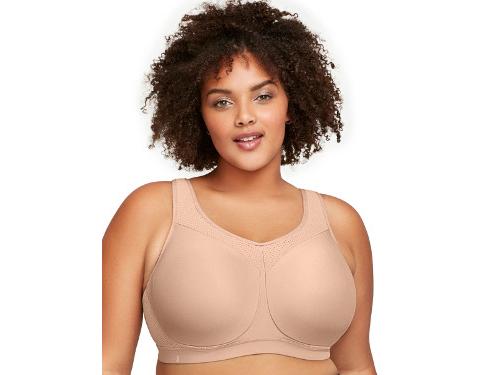 FOR SERIOUS WORKOUTS AND SERIOUS COMFORT If you're curvy and you're serious about fitness, you may have been challenged to find a sports bra that combines the support you need with the comfort you deserve. Look no further. Our Glamorise sports bra is the one you need for light-to-moderate-to-high-impact workouts. Heres one bra you can wear for everything from yoga to strength conditioning to running without having to buy different bras. At the heart of the superb support is our WonderWire design, constructed with a cushioned comfort band plus a padded channel that surrounds the underwire to prevent poking. The double-layer cups are designed for no-bounce control with a seamless, non-stretch outer layer for added stability. Airy comfort zones are strategically placed for ventilation, especially in back. Plus, the moisture-wicking fabric pulls sweat away from skin to keep you cool and comfortable no matter how rigorous your workout. The back of this wired sports bra is designed with two-way stretch to move effortlessly with you and stay in place, and the wide, adjustable straps are easy on your shoulders. Work out in confidence and comfort with this high-impact sports bra from Glamorise. WONDERWIRE TECHNOLOGY - A padded underwire for no-poke comfort. ENHANCED NO-BOUNCE SUPPORT - A cushioned wide inner band provides even more support. SEAMLESS TWO-LAYER CUPS - Designed for no-bounce control with a seamless, non-stretch outer layer for added stability. AIRY COMFORT ZONES - Placed at the neckline and back for ventilation. MOISTURE-WICKING COOLNESS - Fabric pulls sweat away from skin to help keep you cool. STRETCH IN BACK - Two-way stretch back moves effortlessly with you. HAND WASH - We recommend washing your sports bra by hand to preserve the stretch. DESIGNED IN NEW YORK SINCE 1921 - With over 100 years of experience crafting bras for curvy women, we're experts at designing and combining comfort and support. SAME AS GLAMORISE BRA STYLE #9066.