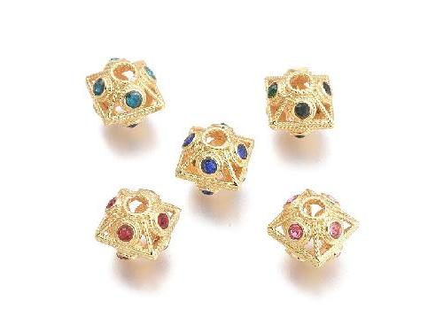 Brass Micro Pave Cubic Zirconia Beads, Hollow, Bicone, Real 18K Gold Plated, Mixed ColorSize: about 8.7mm wide, 9mm long, 9mm thick; hole: 2.1mm.