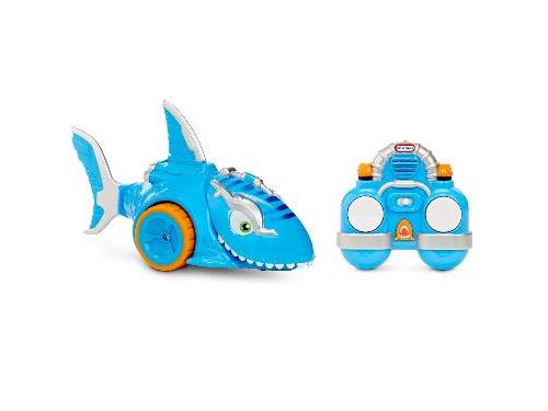 Shark Strike RC is an easy-to-use radio control toy car that puts kids in total control of the shark's speed and direction! Shark Strike RC is built for stunts with impressive speed and 360˚ spins. When kids drive Shark Strike RC forward, the shark's mouth opens, and it chomps down and thrashes. It gets kids in the swim by making shark sounds, playing music and wagging its fins as kids drive it around. Let your kids' inner sharks out with Shark Strike RC by Little Tikes!