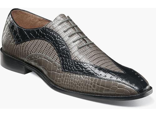 Two tone one love. The Stacy Adams Tallero V-Tip Oxford features a wild mix of crocodile and lizard print leather. Together they create a unique shoe that is sure to leave no head unturned. Stacy Adams designed quality lifestyle fashion pieces for the distinguished gentleman who knows true style.