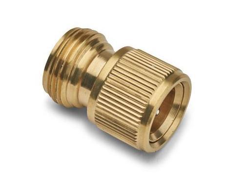 Brass Hose Connector Hardware Don let a leaky plastic hose connector get you down. Brass is far superior to plastic, resisting weathering and corrosion to give you fixtures with long service life. These fittings turn standard threaded hoses, pipes, and spigots into quick-change fixtures for easier switching. That means less time bent over struggling with wet hose connectors. They’re also a great way to join two (or more) hoses together to hit the farthest reaches of your yard or garden. Solid machined brass fittings are infinitely superior in durability to plastic-hardly more expensive, they're simply a better value. These convert standard screw-on fittings to quick-connect, allowing rapid changing of accessories and rapid movement of the hose from faucet to faucet. In addition, if you need to increase the length of your hose, the hose connector can also be used to attach two hoses together. The Female adapter (#1) screws directly to the tap. The tap-end connector (#2) screws into the tap end of the hose and snaps into (#1). The Hose-end connector (#4) screws to the male threaded end of the hose. (Ours also has an automatic water-stop valve in it, which closes instantly when disconnected. ) Finally, the male adaptor (#3) screws into the nozzle or other spray device and is then snapped in (#4), completing the assembly from tap to nozzle. The Quick Connect Hose Connector Set includes one each of (#1), (#2), (#3), & (#4). Get additional female adaptors (#1) and extra male adaptors (#4) to equip more taps and more spraying accessories with a quick connect function using the same hose. Durable Gardening Equipment Two of the biggest things we consider with the tools we offer is how long they last and if they make our work a little easier. It how you know you have something that provides a great value. Be sure to take a look at our product demonstrations to see just how easy these fixtures make connecting your hoses. Get your brass hose connector hardware online from Gar