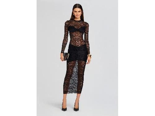 Make a statement in Mother of All's elegant Ellie Lace Midi Dress. This sheer, completely see through, lacey midi dress is the perfect combination of elegance and edginess with long sleeves and crew neck. Shown here in Black. 95% Polyamide, 5% Elastane Made in China Model is 5ft10in wearing size S Style No. 3252 About Mother of All Launched in 2018 by Noa Pasternak and Golan Taub, Mother of All draws upon a divine feminine energy-Eve, the first woman to roam the Earth. Bold hues and nostalgic nods to the '80s combine with classic tailoring to create uniquely elegant silhouettes. Blurring the lines between evening and casualwear, designs remain timeless with their enduring sensibilities.