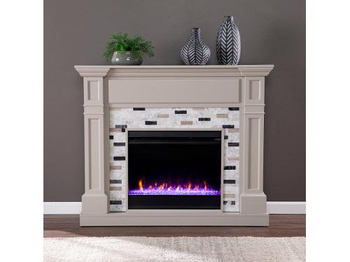 Warm up your space with contemporary design when you bring home this color changing electric fireplace. Classic woodwork creates a cozy fireplace look, while the sleek marble surround adds a clean, modern feel to your living room or dining area. Realistic faux fire logs and color changing flames reflect off the faux crystal fill, working with or without heat for year-round enjoyment. Curl up and unwind in cozy comfort when you add this marble fireplace to your contemporary dcor. Available for Online Purchase Only. Ships Directly from the Manufacturer. RC Willey Delivery is Not Available. Assembly required. Electric fireplace w/ marble surround and color changing flames Color changing lights bounce off faux glass fill, personalizing your fireplace look Remote control operation provides a sl...