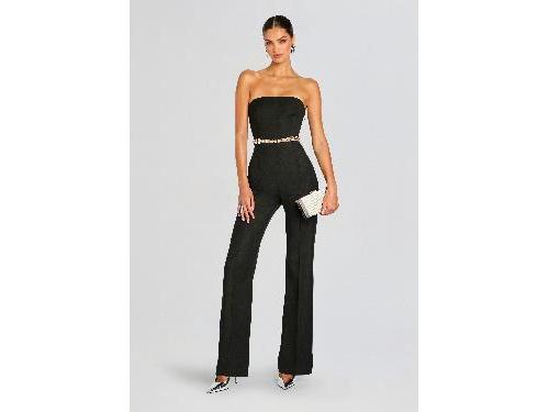 Stand out in style with our Glenda Jumpsuit. This chic and elegant black strapless jumpsuit adorned with an embellished waist is your ticket to commanding the spotlight. Perfect for upscale events, this jumpsuit ensures you exude confidence and grace. Shown here in Slate Grey. 100% Polyester Made in India Model is 5ft10in wearing size XS Style No. HL24-8103