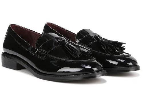 Easy everyday elegance. These womens shoe are a smart update to our menswear-inspired Carolynn tassel loafer replacing the chunky lug soles with a sleeker low profile.Synthetic leather upper partially made from recycled materials Partially recycled linings with soft + eco-conscious comfort Slip on design for easy on/off Round toe1.25 in heel Franco Sarto Franco Carolynn Low Loafer (Black Faux Leather) 9.5 W Round Toe