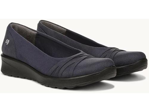 Feel-good faves! Go here there or anywhere in slip ons up for anything on your agenda. Stretch fabric upper with partially recycled linings and round toe Slip-ins for easy on/off BLOOMâ„¢ materials: Eco-conscious algae-infused foam layer under the insole BZEES Air Step Technology: Designed so you'll feel weightless energized and free Ultra Lightweight: Step lightly with a nearly weightless feel Dynamic Stretch Fabrics: Move freely in shoes with built-in stretch Free Foamâ„¢ Comfort: Low pressure insoles with maximum foot contact and cushy arch support Dream Puff foam padding at the heel So Cush arch support Anti-Microbial and Odor Control technology1 1/4 in heel Get Width It: Countless pairs of Bzees come in wide width shoes for women Machine Washable: Wash on cold and air dry Bzees Goody Slip On Shoes (Navy Fabric) 5.0 M